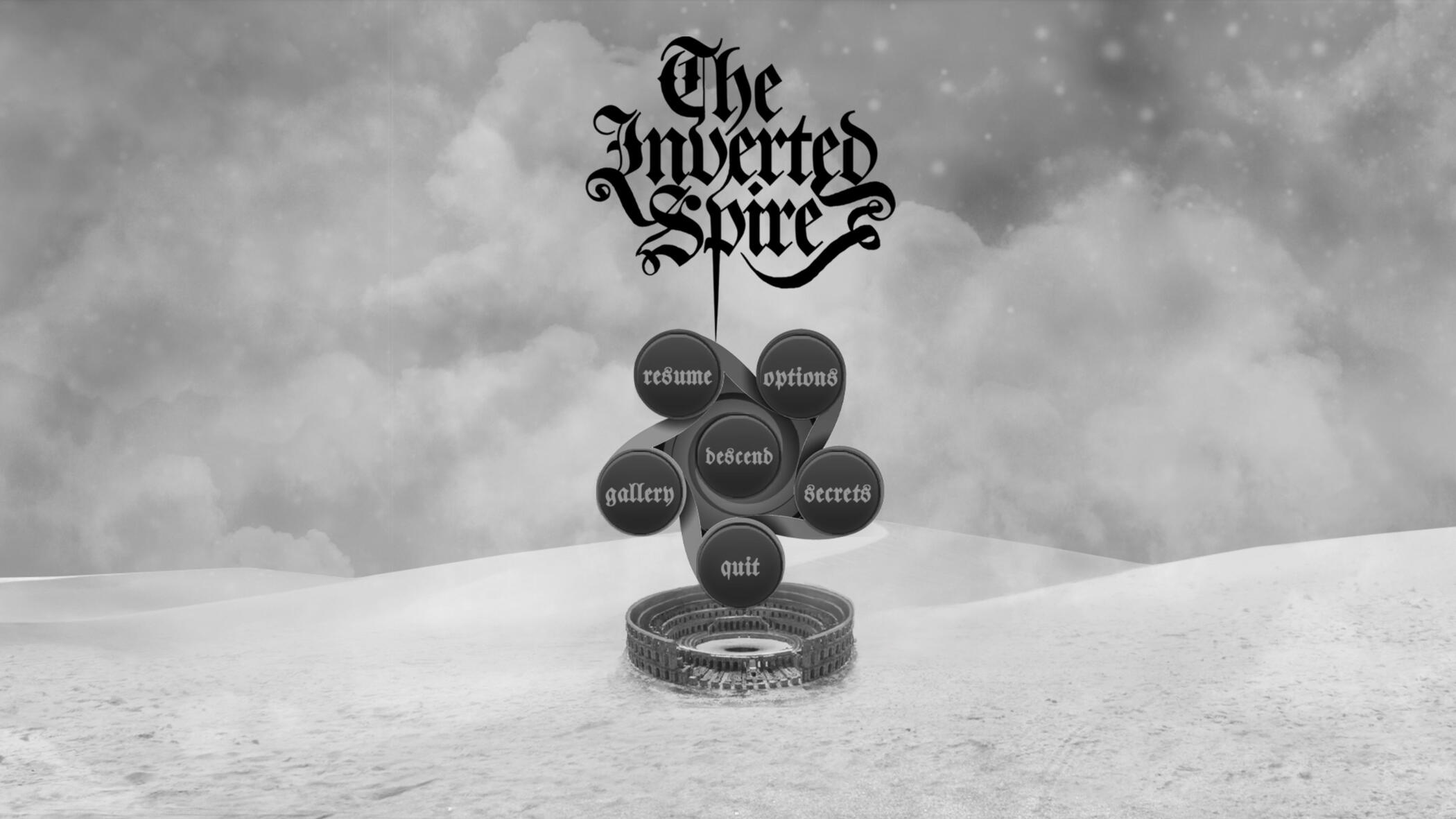The Inverted Spire's menus are comprised of intricate moving designs. They aim to reflect the worldbuilding without feeling visually overwhelming.The main menu is built with a seamlessly scrolling layered background, animated buttons, and an animated transition that simulates the player "descending" into the spire when a new game begins.